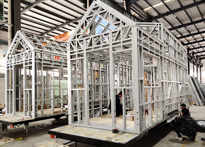 Petite maison préfabriquée sur roues avec cadre modulaire en acier léger AS/US