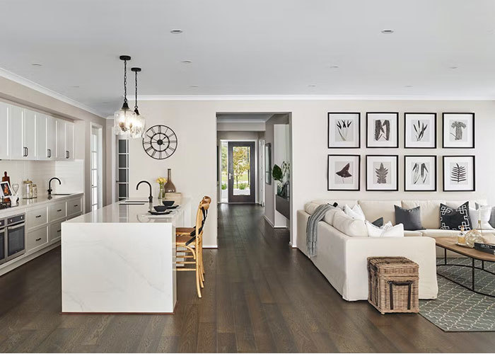 Nichée à l'arrière de la maison pour plus de tranquillité, le salon offre une retraite séparée et confortable pour la détente et les moments en famille. Pour compléter l'aménagement pratique, un garage pratique pour deux voitures est situé sur le côté droit de la propriété.
